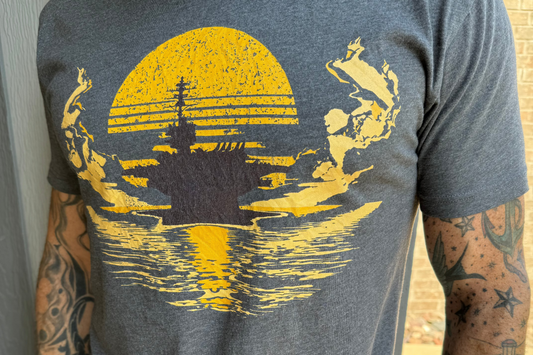 Aircraft Carrier Sunset T-Shirt - Heather Heavy Metal